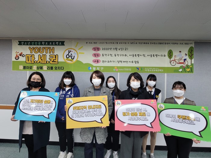 [시민일보 = 여영준 기자] 서울 동작구의회(의장 조진희)가 지난 6일 구의회 제1소회의실에서 사당청소년 문화의집 주관으로 청소년활동프로그램 공모사업인 'YOUTH 따·세·권(따릉이로 세상에 권리를 외치다)' 회의를 개최했다.