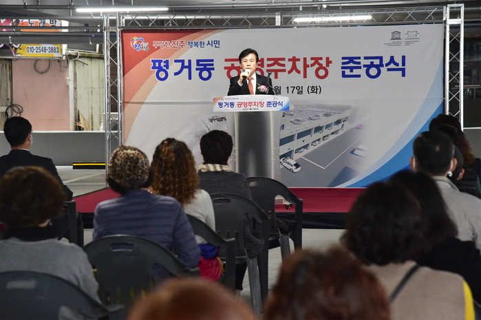평거동 공영주차장은 전기차 충전소 1면, 장애인전용 4면 등 107면으로, 민선7기 조규일 시장의 공약사업 중 하나로 특별교부세 5억을 포함한 총 사업비 25억원을 들여 기존 노외 주차장을 2층 3단의 주차타워로 건립하여 17일 오후 3시 30분 준공식을 가졌다.