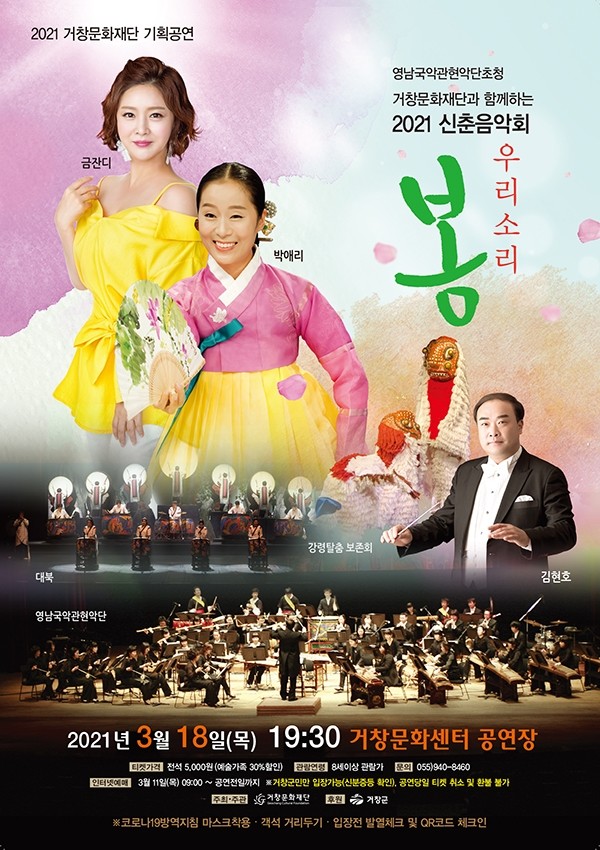(재)거창문화재단(이사장 구인모)은 2021년 신춘음악회로「우리소리 ‘봄’」을 오는 18일 목요일 오후 7시 30분에 거창문화센터 공연장에서 개최할 예정이다.