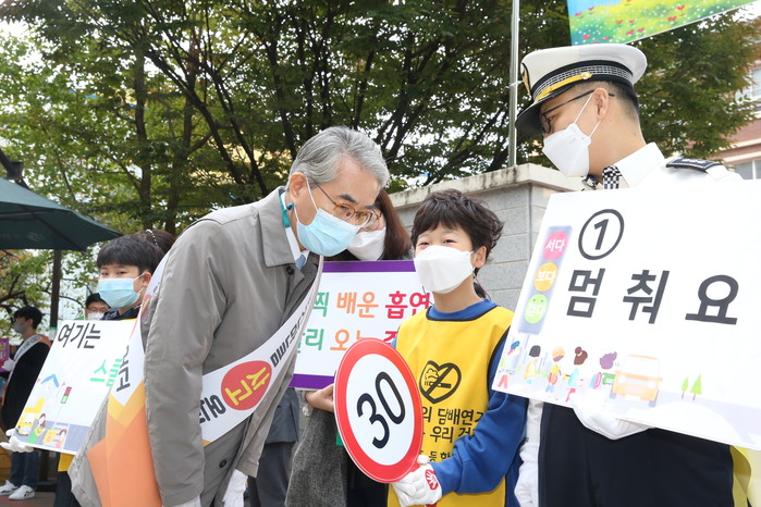 이번 캠페인은 학생들의 건강하고 안전한 학교환경을 만들기 위해 △어른들은 안전운전, 우리들은 안전보행 △금연하면 사랑받고, 흡연하면 눈총받고 등의 슬로건 아래 교통안전과 금연 캠페인을 함께 진행하였다.