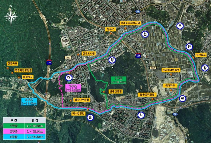 이와 함께 장유 그린 워킹로드는 2022년 완공을 목표로 추진 중인 조만강 생태하천 복원사업 구간과도 연계가 가능해 명품 도심 하천을 잇는 김해 대표 둘레길이 될 전망이다.