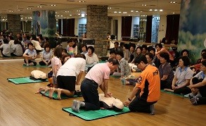 | ▲ 대방노블랜드 입주민이 심폐소생술 실습을 하고 있다 |