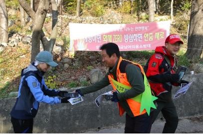 지난 16일은 오봉산등산로 입구에서 양산소방서, 물금의용소방대, 양산시 등 60여명이 모여 등산객들에게 홍보물을 배부하며 캠페인을 진행하였다.