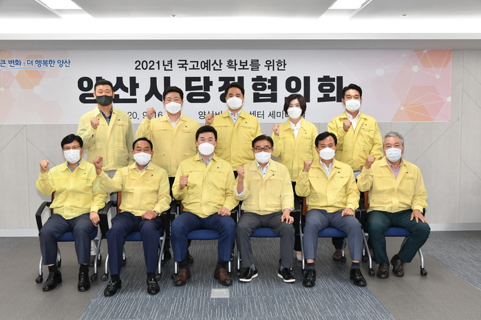 양산시(시장 김일권)는 내년도 국·도비 예산을 최대한 확보하기 위해 더불어민주당 및 국민의 힘과 지난 14일과 16일 2회에 걸쳐 각각 당정협의회를 개최하고 2021년 국비확보방안에 대해 논의했다.