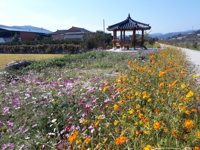 이런 상황을 인지한 생비량면은 지난 8월부터 이곳을 정비해 정자를 설치하고 코스모스 꽃씨를 뿌려 주민들에게 쾌적한 쉼터를 제공, 호응을 얻고 있다.