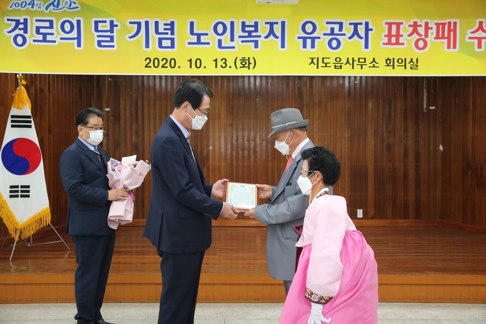 | ▲ 지도읍 경로의달 노인복지 유공자 표창패 전달식(출처=신안군청) |