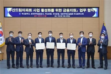 기관별 세부 역할을 보면, ▲(부산시) 드림아파트 정책을 통한 용적률 및 높이 제한 완화, 기타 인·허가 절차 간소화 등 행정지원 ▲(한국주택금융공사) 건설사업자에 대한 은행과 주택도시기금의 대출 보증 지원으로 심사 기간 단축 ▲(부산은행, 우리은행) 재원 대출 취급·실행, 저렴한 취급 수수료와 금리 우대, 저리의 주택도시기금 대출로 건축비 지원 ▲(대한주택건설협회) 협회 회원사에 협약상품 홍보, 사업 활성화 지원 등이다.