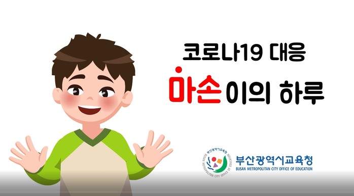 부산광역시교육청(교육감 김석준)은 코로나19 대응 생활수칙을 담은 ‘마손이의 하루’애니메이션과 시종 음원(수업 시작과 끝을 알리는 음원)을 제작, 13일 각급학교에 배포했다.