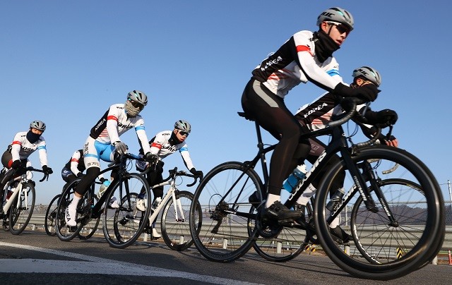 | ▲ 사이클 국가대표 후보선수단, 지난 1월 강진군 일대 동계 전지훈련 / 강진군 제공 |