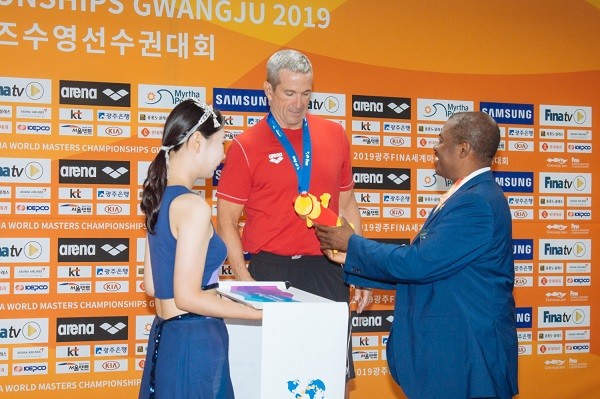 [광주=정찬남 기자] 광주세계마스터즈수영대회 참가 선수들의 마지막 하이라이트는 단연 메달 시상식이다.