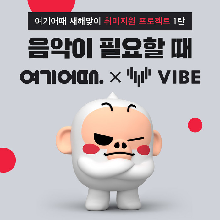 같은 기간 바이브는 앱 내에서 1곡 이상 청취하는 사용자 1만명을 추첨해 여기어때 5000원 쿠폰을 제공하는 이벤트를 진행한다.