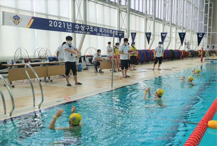 목포해양경찰서(서장 임재수)는 지난 21일 광주광역시 남부대학교 수영장에서 2021년도 제1회 수상 구조사 국가자격시험을 실시해 응시자 총 19명(남15, 여4)을 대상으로 영법, 구조능력, 응급처치 3과목을 평가했다.