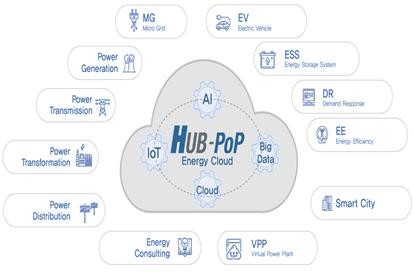 HUB-PoP(Hyper-connected Ubiquitous Bridge Platform of Platform) 플랫폼은 전력 어플리케이션의 개발 및 서비스 운영, 빅데이터 분석에 활용하기 위해 한전이 구축 중인 클라우드 기반의 디지털 플랫폼이다.