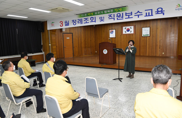 창녕군은 2일 3층 대회의실에서 공무원 90여명이 참석한 가운데 개최된 정례조회에서 시낭송으로 3월 첫 업무를 시작했다.
