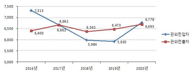 - 최근 5년간 밀양시 전출입자 현황 -