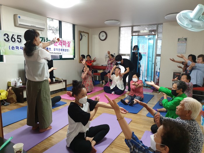 ‘찾아가는 문화마실’은 12월까지 본동경로당 등 5개 경로당을 방문해 꽃차문화체험, 손마사지·요가, 시 낭송·시 창착 프로그램을 제공하며 농촌지역 어르신들은 여가 선용과 문화 혜택을 받을 수 있다.