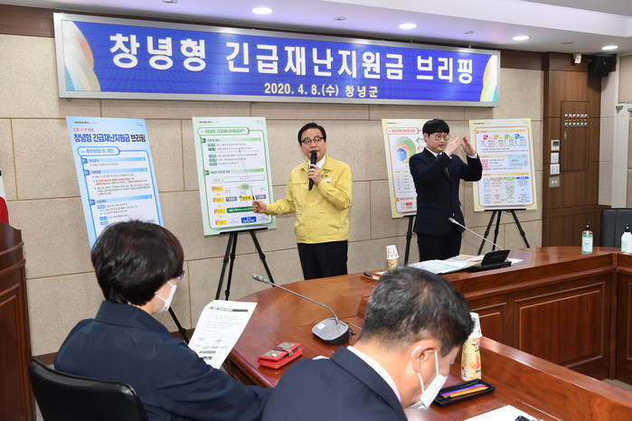 창녕군(군수 한정우)는 8일, 군청 전자회의실에서 브리핑을 통해 정부와 경남의 긴급재난지원금에서 제외되는 군민 15,149가구에게 4월중으로 창녕형 긴급재난지원금을 지급한다고 밝혔다.