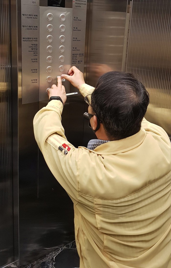 진주시는 신종 코로나바이러스 감염증(코로나19) 확산 방지를 위해 한국승강기안전공단과 연계하여 교육시설 77개소의 승강기 213대와 다가구주택 승강기 550대 등 관내 전 승강기 2,218대에 항균 필름을 부착하고 있다고 밝혔다.