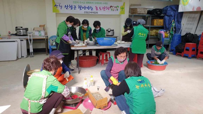 산청군새마을협의회(회장 조재학), 산청군새마을부녀회(회장 최영내), 산청군새마을문고(회장 조순녀) 회원들은 각 읍면별 독거노인 등 90여 세대에 음식을 전달할 계획이다.