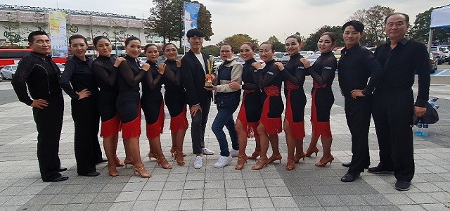| ‘제4회 전국스포츠클럽 교류대회’에 참가한 강진군 생활체조 댄스스포츠 일반부 회원들이 발군의 실력을 발휘해 2위에 입상하는 놀라운 성적을 거두고 기념촬영을 하고 있다.=사진, 강진군 제공 |