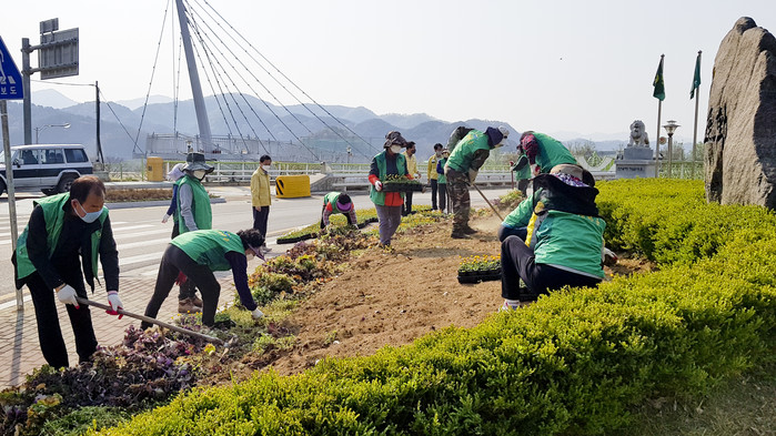 새마을운동합천군지회(회장 박진식)는 지난 7일 읍면 협의회장.부녀회장, 문고 임원 등 40여명이 참여한 가운데 남정교차로 좌·우측 화단과 합천댐 주변 화단에 지난해 심은 겨울꽃을 뽑고, 페튜니아, 금잔화, 베고니아 등 14,000여본을 식재했다.