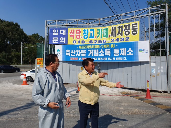 이어 29일에는 정일구 자치행정위원장과 함께 거점소독소(팽성, 안중)를 방문해 방역근무자들 노고를 격려하면서, 아프리카돼지열병 차단에 적극적으로 노력해 줄 것을 당부하고 현장근무 애로사항을 청취했다.