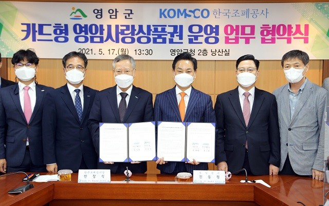 [영암=정찬남 기자] 전남 영암군(군수 전동평)은 지난 17일 한국조폐공사와 카드형 지역사랑상품권인 ‘영암사랑카드’ 발행을 위한 업무협약을 체결했다.