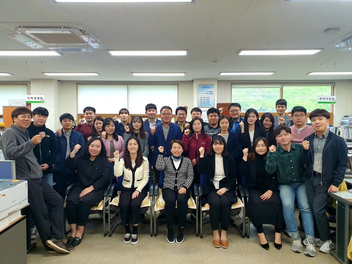 | ▲ 영암군청 투자경제과 직원들이 기념촬영을 하고 있다. |