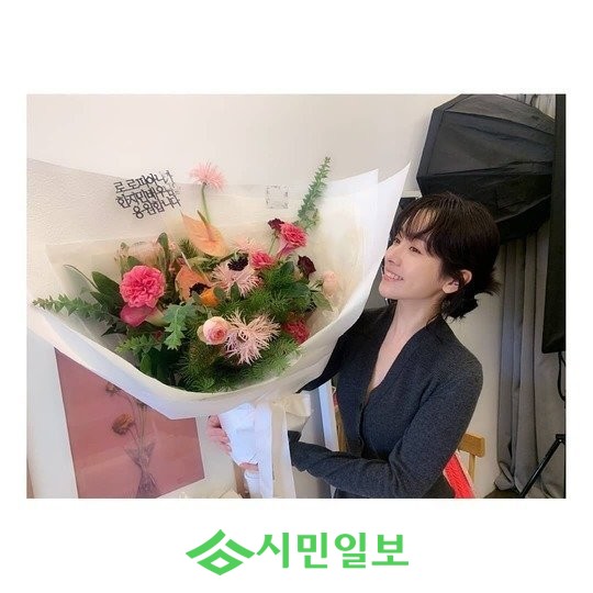 공개된 사진 속에는 커다란 꽃다발을 들고 있는 한지민의 모습이 담겨 훈훈함을 자아냈다.
