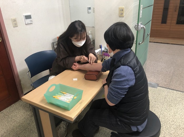 | ▲ 강진군 보건소, 지역민 대상 무료 간염검사 체혈 / 강진군 제공 |