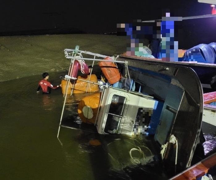 출항을 하려던 선박이 물살에 의해 뒤집혔지만 해경이 신속히 출동해 안전하게 구조했다.
