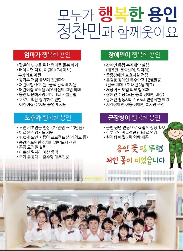정 후보는 “처인지역의 환경개선을 위해 고압선 송전탑 지중화를 적극 추진하며 복지확대를 위한 제도개선에도 노력하겠다”고 말했다.