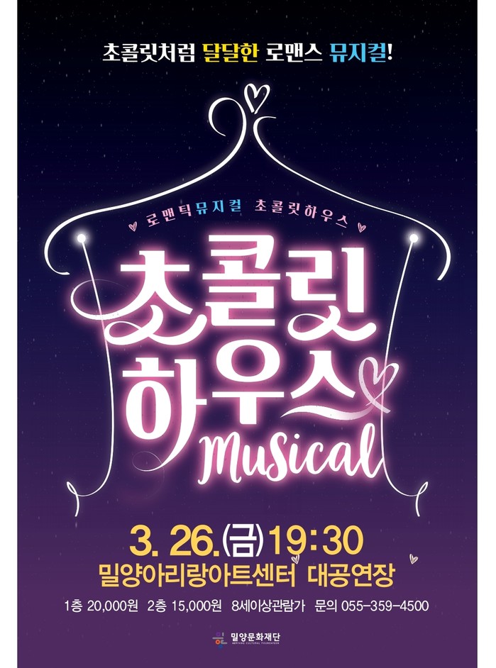 밀양문화재단(이사장 박일호)은 3월 26일(금) 오후 7시 30분 밀양아리랑아트센터 대공연장에서 뮤지컬 <초콜릿하우스> 공연을 진행한다.