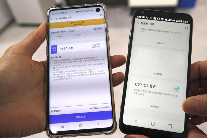 제로페이 앱으로 모바일 산청사랑상품권을 구매하면 최대 20%의 할인 혜택을 받게 된다.