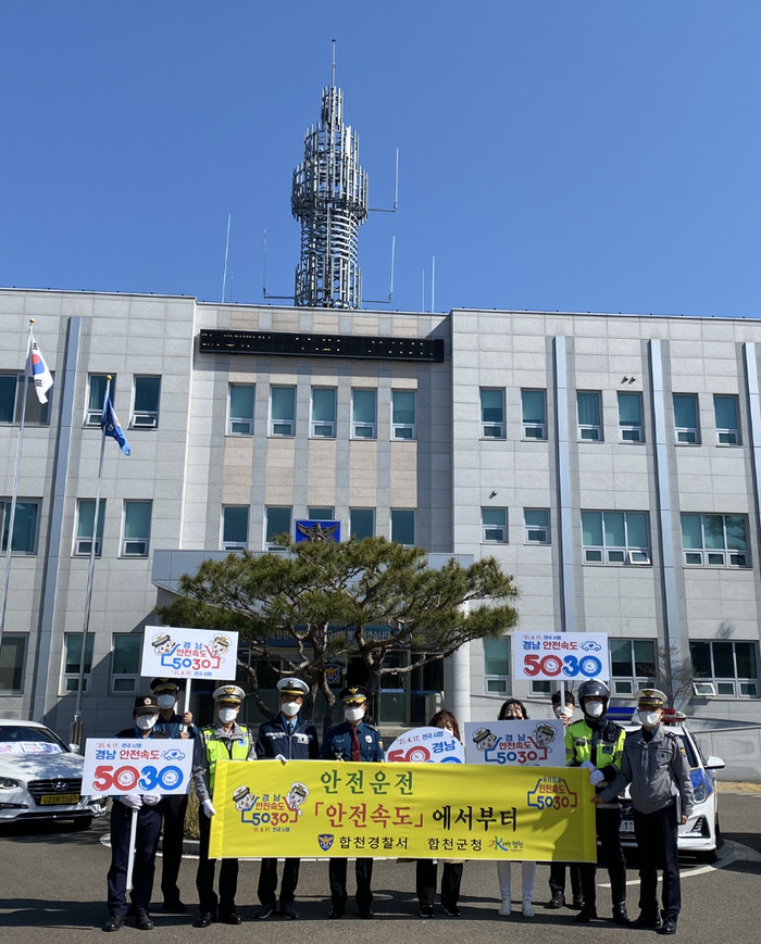 합천경찰서(서장 변석우)는 지난 5일‘안전속도 5030’전국시행 (4. 17.)과 관련하여 합천지역을 순회하는 민·관·경 합동 차량 릴레이 홍보를 실시하였다.