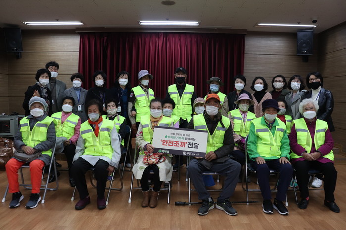 안전조끼 전달식에 참여한 이명희(85, 가명) 어르신은 “겨울엔 날이 빨리 저물어 폐지를 줍기가 더 힘들었는데 우리를 위해 눈에 확 띄는 안전조끼도 주고 정성 가득한 식사를 대접해 주니 너무 감사하다”고 했다.