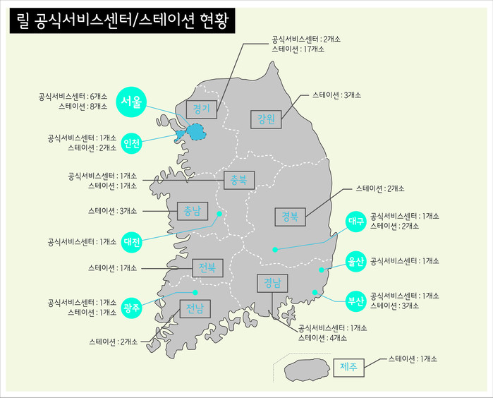 | ▲ KT&G ‘릴 공식서비스센터’ 및 ‘릴 스테이션’ 전국 현황. (사진제공=KT&G) |