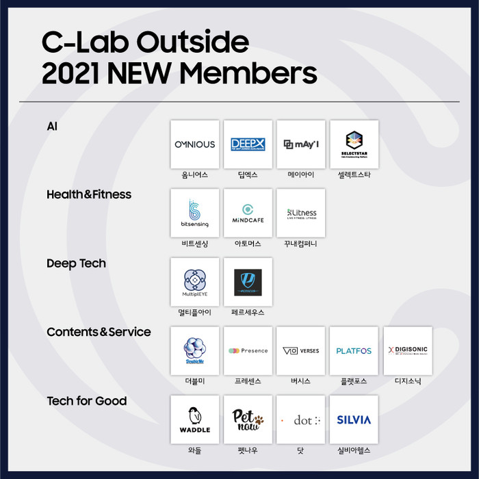 | ▲ 삼성전자가 C랩 아웃사이드 공모전을 통해 선발한 18개 신규 육성 스타트업.(사진제공=삼성전자) |
