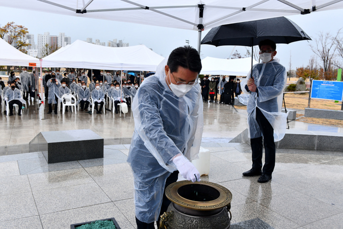 오전 10시 여수항일운동기념탑에서 국민의례 후 헌화‧분향으로 순국선열 및 호국영령에 대한 추모의 시간을 가졌다.