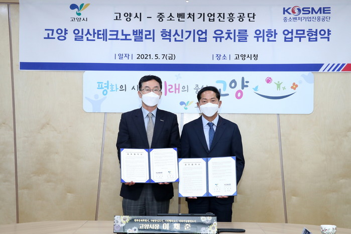 [고양=이기홍 기자] 고양시는 고양일산테크노밸리 혁신기업 유치와 지역 주력산업 육성을 위해 중소벤처기업진흥공단과 업무 협약을 맺었다.