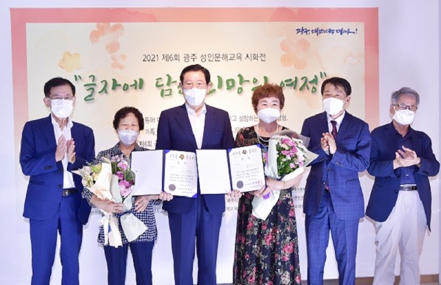 [광주=정찬남 기자] 광주광역시는 성인문해교육 프로그램 참여자의 학습성과를 격려하고 문해교육에 대한 사회적 인식 확산을 위해 공모한 ‘2021년 제6회 광주 성인문해교육 시화전’ 시상식을 27일 개최했다.