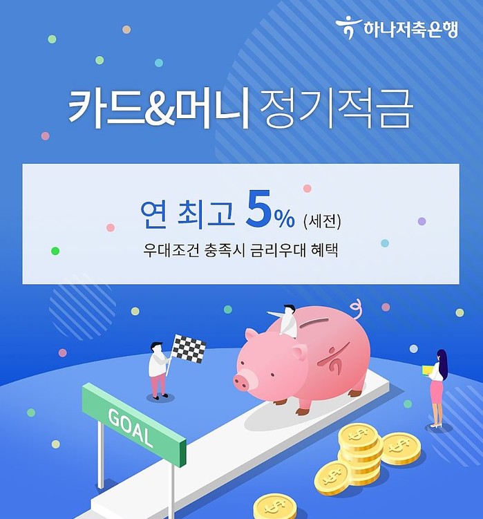 '카드&머니 정기적금'은 기존에 최대 연 4.0%의 금리를 제공했으나 이를 리뉴얼해 정기적금과 함께 하나카드 발급 시에 추가 금리 혜택을 통해 최고 연 5.0%의 고금리를 제공한다.