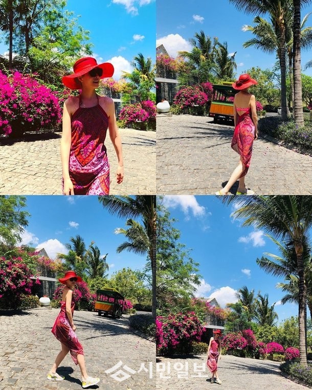 사진 속 김선아는 챙이 넓은 빨간 모자를 쓰고 화려한 무늬의 원피스를 입은 채 각양각색의 포즈를 취하며 감탄을 자아냈다.