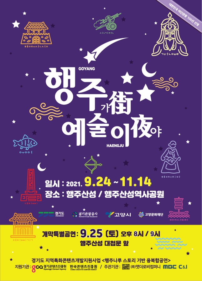 행주산성과 행주산성 역사공원 일대에서 열리는 ‘행주가(街) 예술이야(夜)’는 9월 24일부터 11월 14일까지 52일 동안 진행된다.