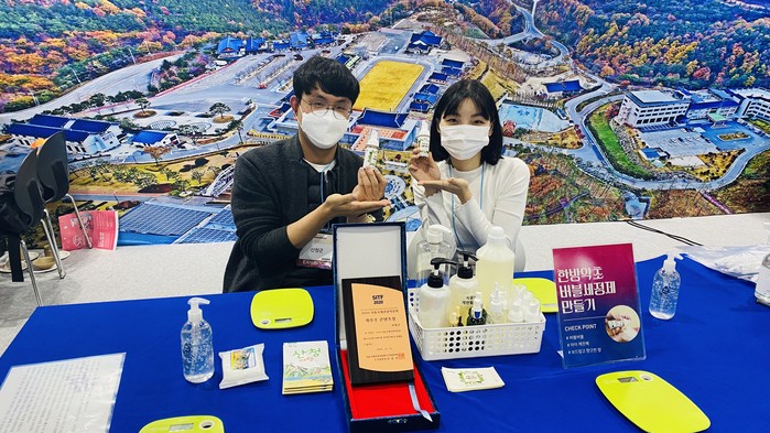 특히 지리산에서 자란 약재를 넣은 한방약초 버블체험과 약초로 만든 향기주머니를 비롯해 각종 약초를 직접 체험할 수 있도록 그릇에 담아 산청 약초의 효능에 대해서 설명, 관광객들의 오감을 만족시켰다.