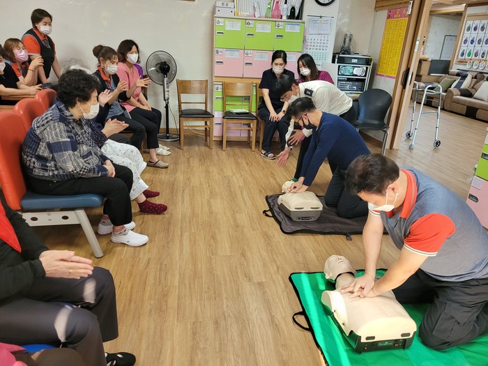 이날 소방안전교육은 도농복합도시 및 노인특성을 반영한 학습계획에 맞춰, 생활 속 응급상황 대처 요령을 익히고 구급대원이 도착하기 전 신속하고 정확한 초기 응급처치를 할 수 있도록 하고자 마련됐다.