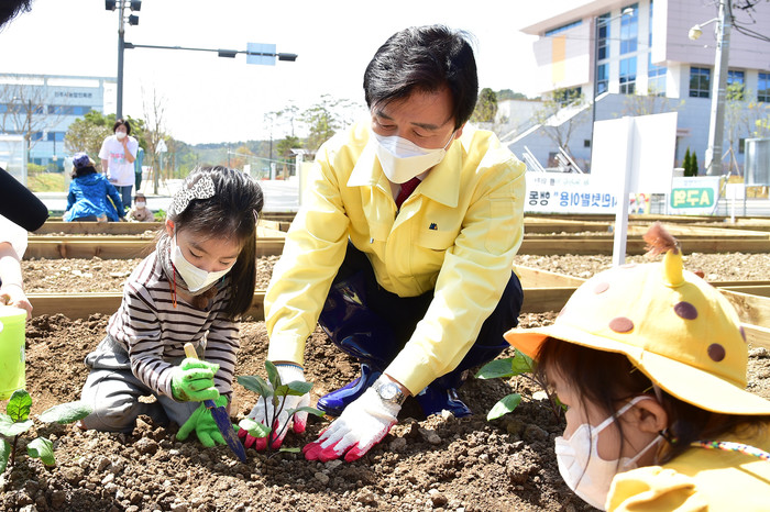 농업기술센터 앞 유휴공간을 활용해 조성된 시민 텃밭은 450여 구획으로 이용자의 불편 사항을 해소하기 위해 통로를 최대한 넓게 확보하고 야자매트를 설치해 작업의 효율과 활동성을 높였고 불분명한 구획 간의 경계는 방부목을 설치해 경계를 명확히 하는 등 전년 대비 텃밭 환경을 대폭 개선했다.