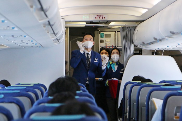 | ▲ 캐빈승무원이 기내에서 럭키드로우 이벤트를 진행하고 있다.사진 |