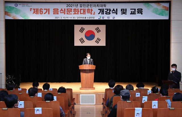 [강진=정찬남 기자] 전남 강진군(군수 이승옥)은 지난 10일 강진아트홀에서 제6기 음식문화대학 개강식을 갖고 본격적인 교육을 시작한다고 밝혔다.