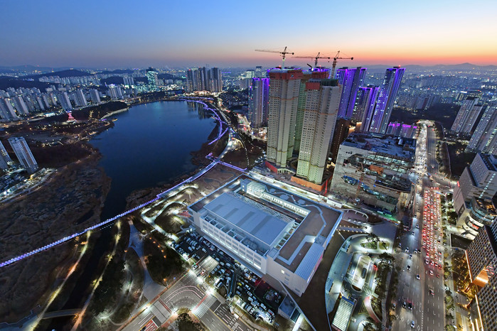 | ▲ 수원 광교호수공원과 수원컨벤션센터 일대 야경.(사진제공=수원시청) |